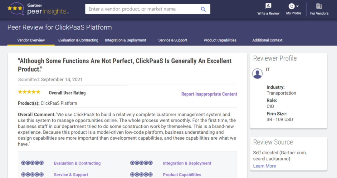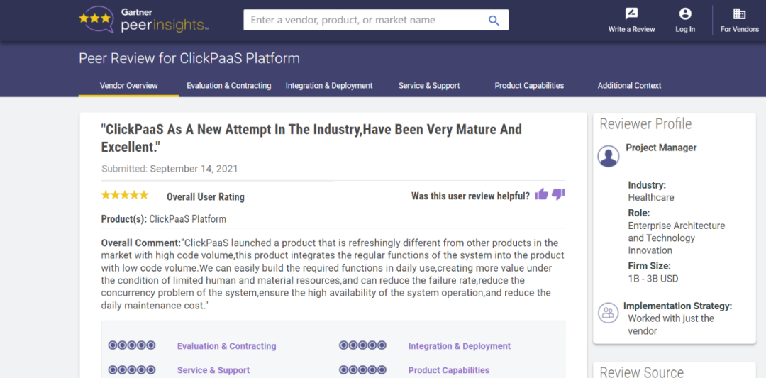Tips::::【Peer Insights】——用户对企业IT产品和服务发布真实评价的平台。。目前已有355个市场,,255,000条经过验证的评价。。每一条评价Gartner会针对参评企业营收规模及参评人员信息做验证、、、、评价内容做多维核实。。